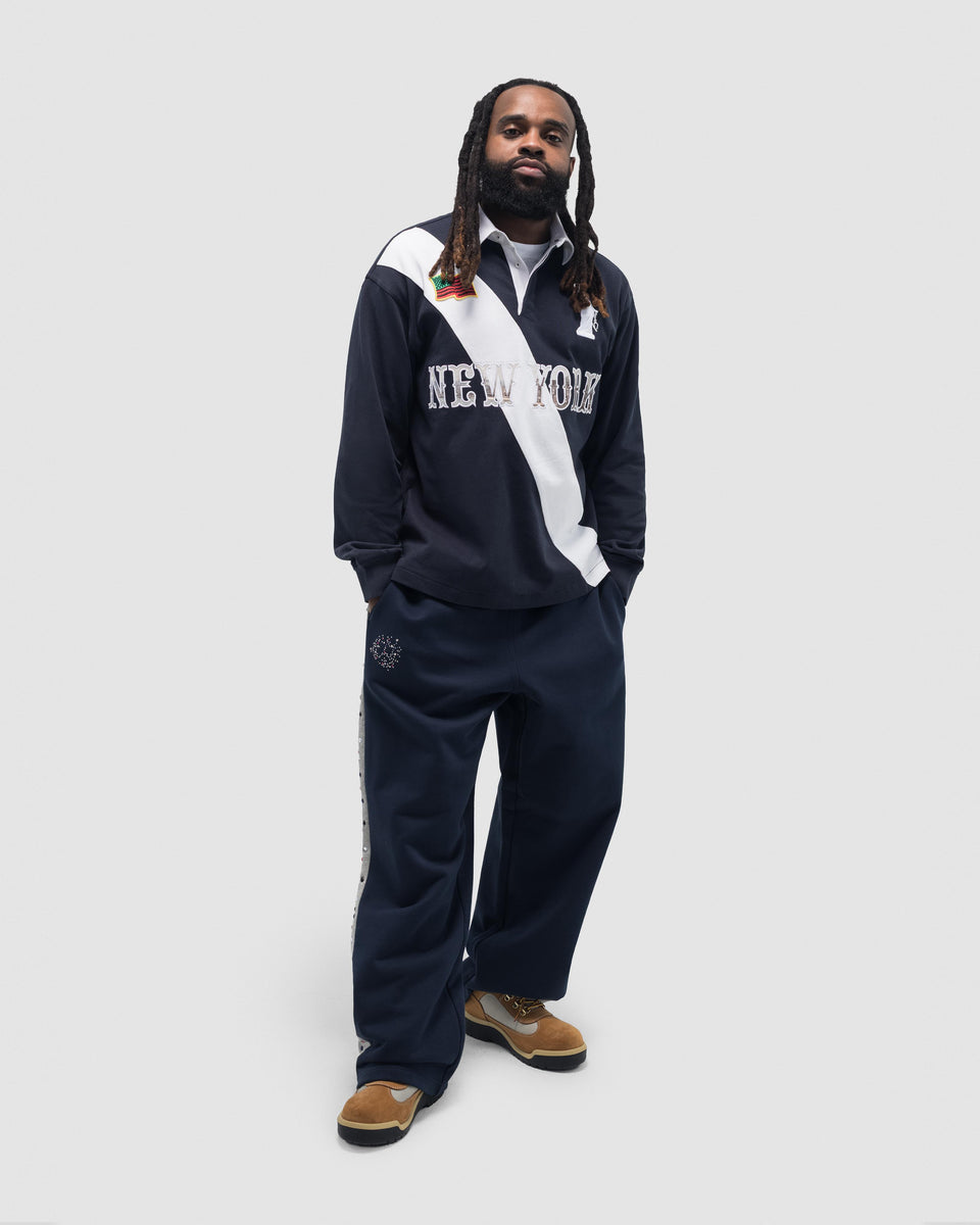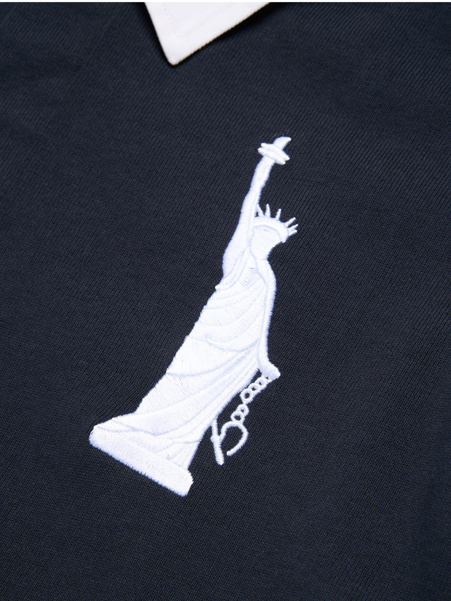 Produced in 100% heavyweight cotton and cut to a regular fit with a concealed button-up collar, our Lady Libertas Rugby updates a classic silhouette with Libertas motifs, including an embroidered ‘Libertas’ Lady Liberty, 1886 – the year of the statue’s dedication – a Denim Tears New York spellou…