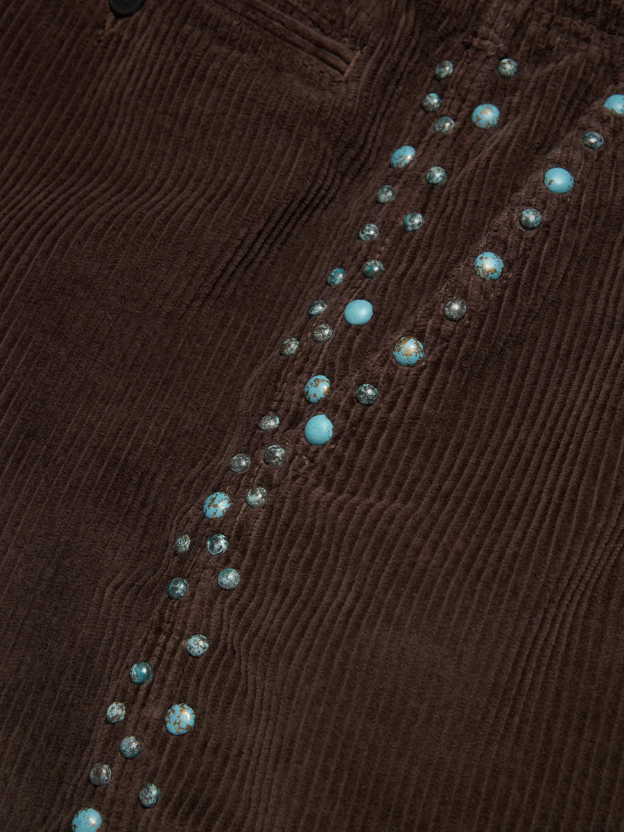 Produced in 100% cotton, our Rhinestone Corduroy Shorts feature rhinestone embellishment across the full length of the seams, mirroring the natural weathering of the Statue of Liberty.